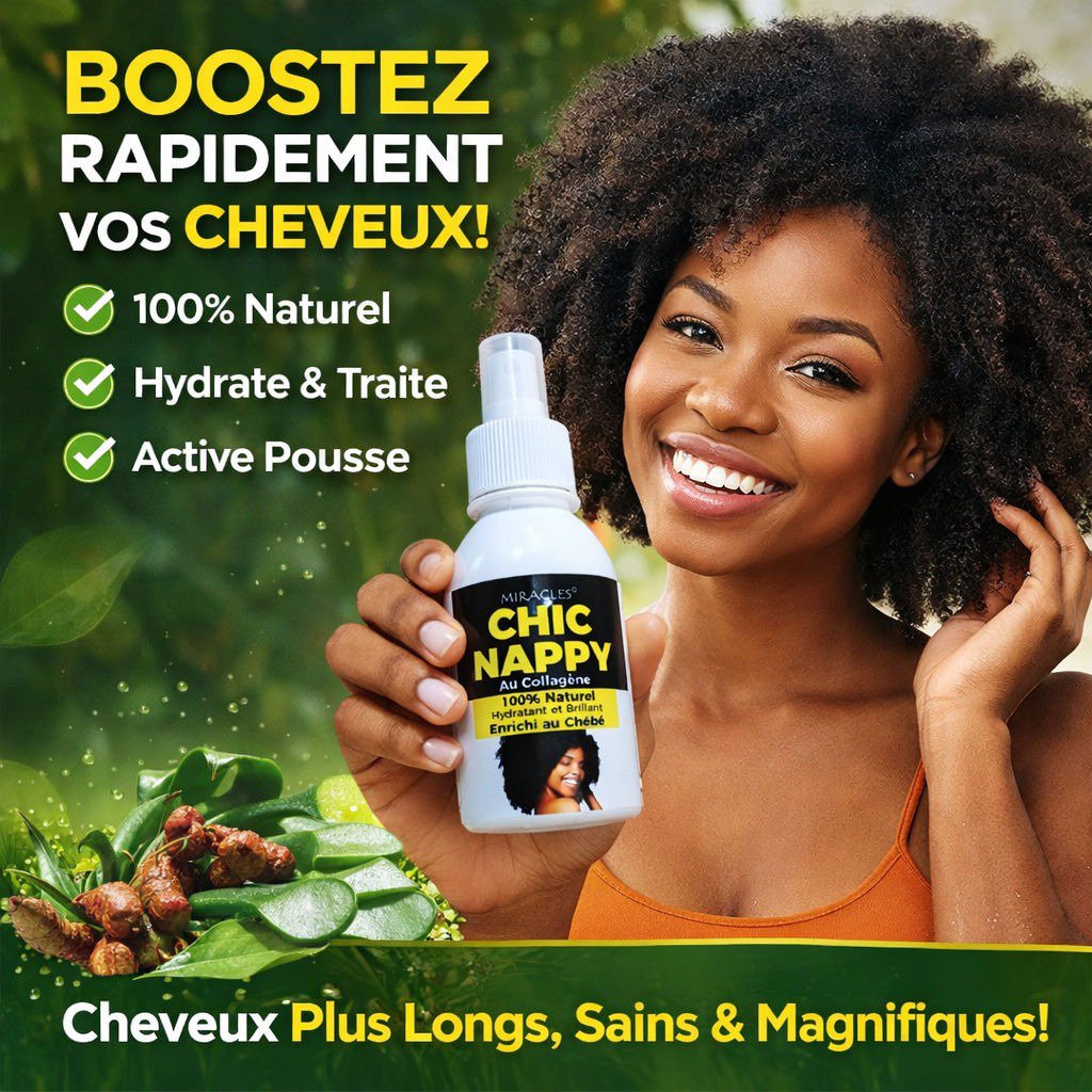 CHIC NAPPY est un sérum capillaire 100% extrait de plantes parmi lesquelles le Chebé et Amla enrichi au pur collagène.
